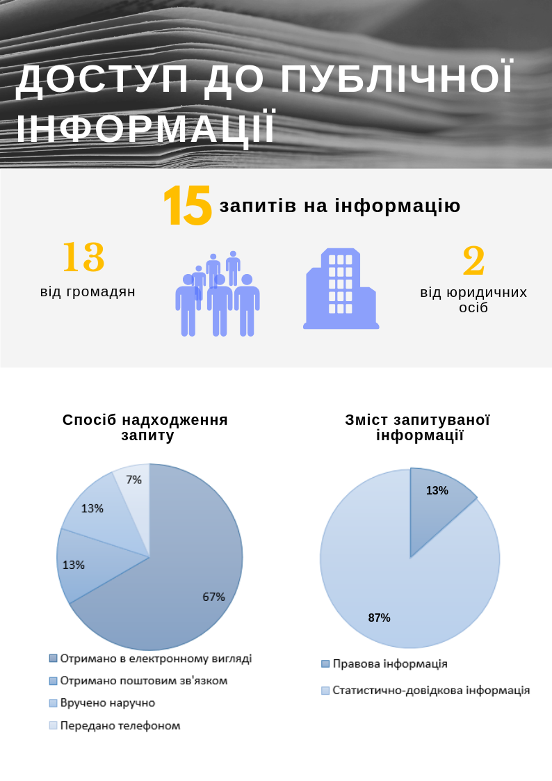 Протягом дев’ятої сесії на адресу Комітету також продовжували надходити запити щодо надання публічної інформації з питань, віднесених до його відання. Загалом було отримано 15 запитів, більшість яких - від громадян. Найпоширенішим способом подання запиту були електронні засоби зв’язку: у такий спосіб було направлено 10 запитів (67%). Ще 2 запити були надіслані на паперових носіях, стільки ж - доставлено особисто і 1 - передано телефоном.