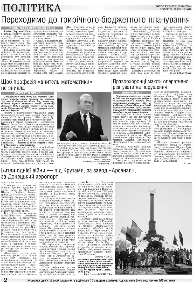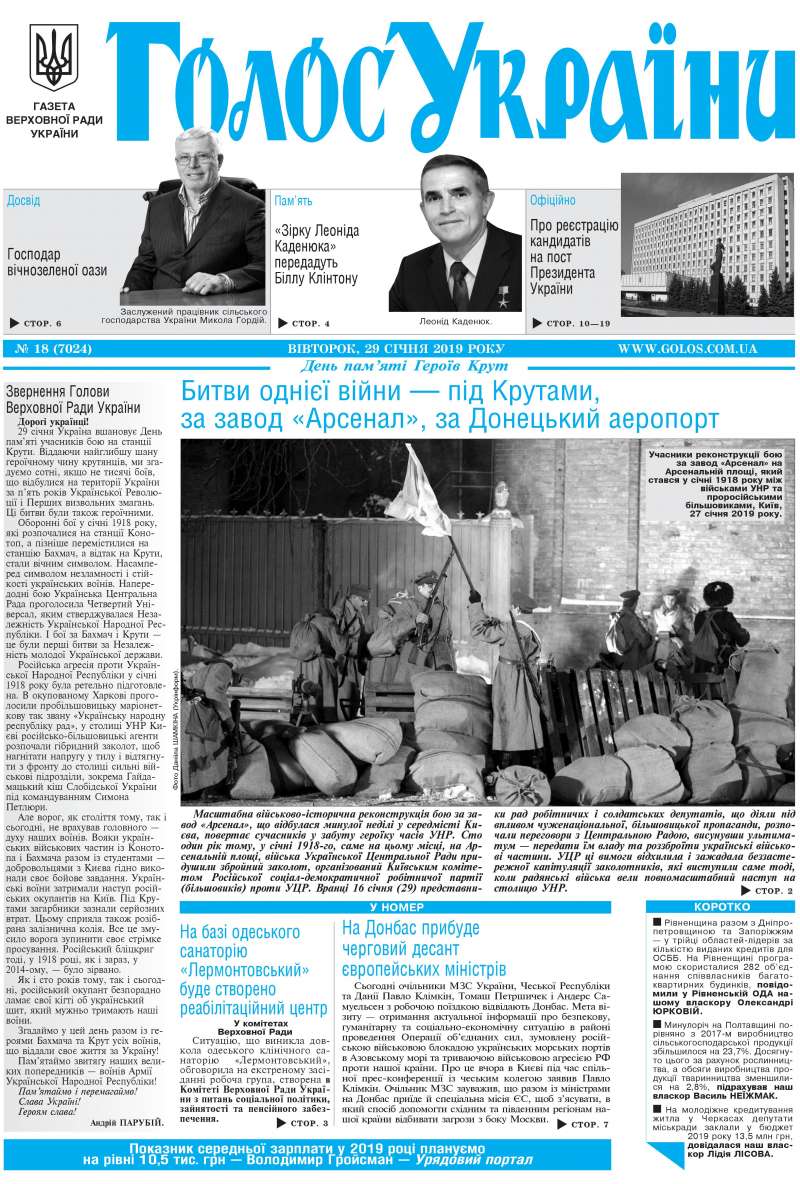 Повний випуск «Голосу України» від 29.01.2019 на сайті http://www.golos.com.ua