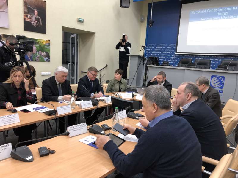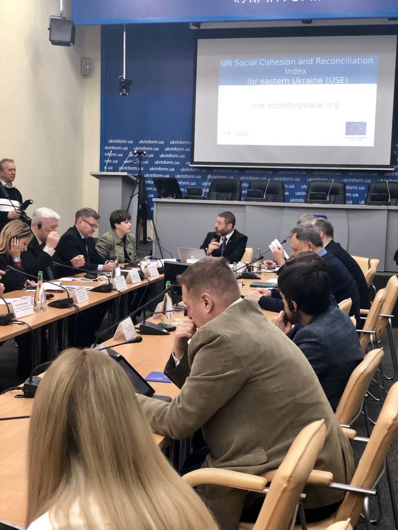 Спеціальний доповідач, Радник координатора офісу ООН в Україні з питань миру і розвитку Стен Вейтсман представив дослідження «Індекс Соціальної згуртованості і примирення в 2018 - чи є новий коридор можливостей для України?»). Зокрема, він відзначив зниження рівня персональної та економічної безпеки громадян, які мешкають в частинах Донецької та Луганської областей, що розташовані біля лінії зіткнення. Окрім того, він звернув увагу на низький рівень довіри до представників центральної влади у цієї категорії громадян.