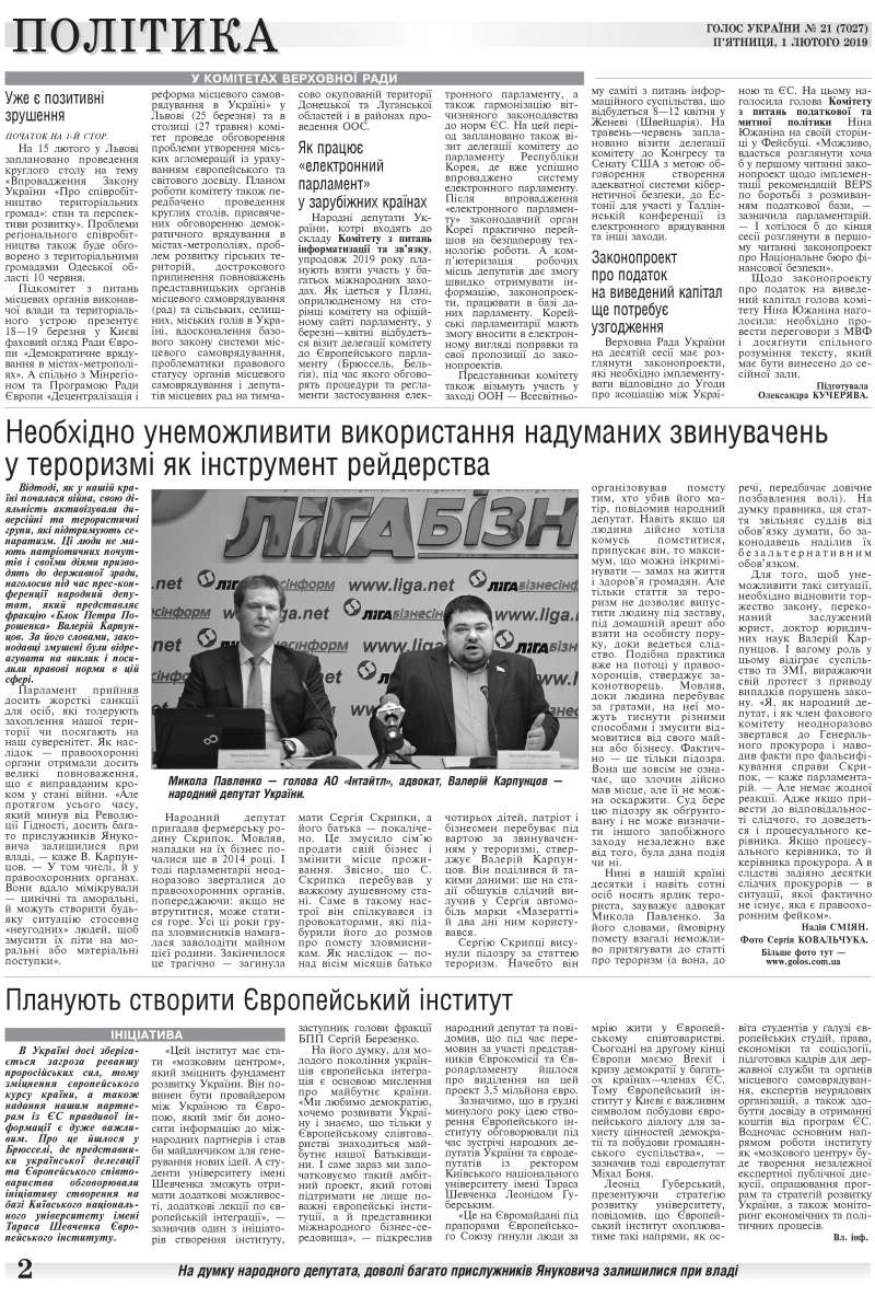 Повний випуск «Голосу України» від 01.02.2019 на сайті http://www.golos.com.ua