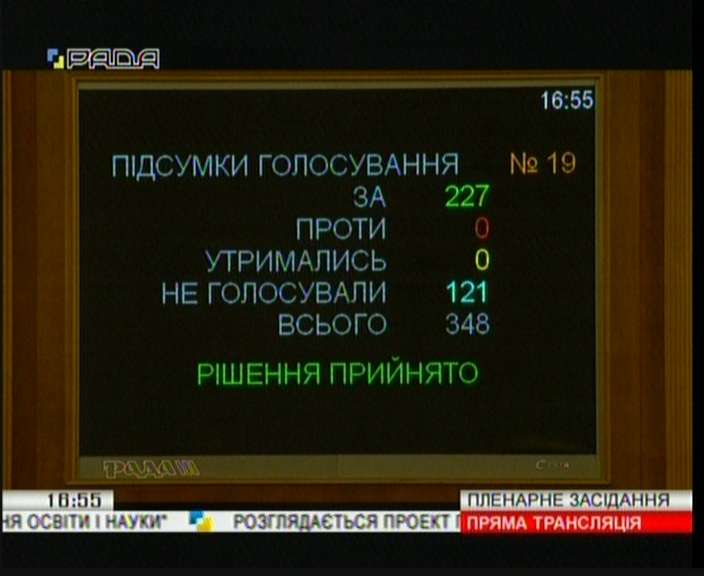 227 голосами проект Постанови прийнято за основу та в цілому.
