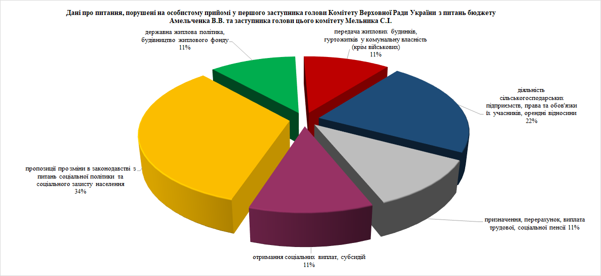 Під час особистого прийому громадяни порушували питання соціальної політики та соціального захисту населення, аграрної політики і земельних відносин, житлової політики.