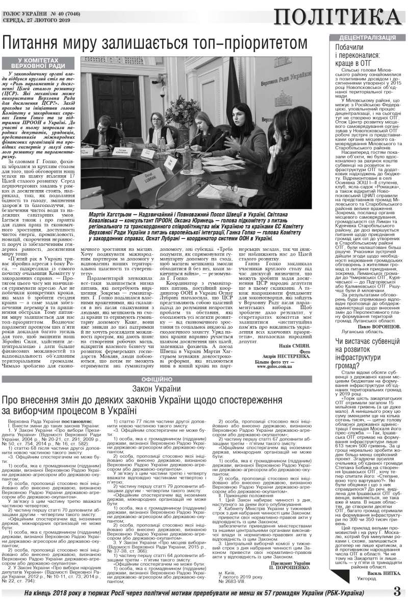 Повний випуск «Голосу України» від 27.02.2019 на сайті http://www.golos.com.ua