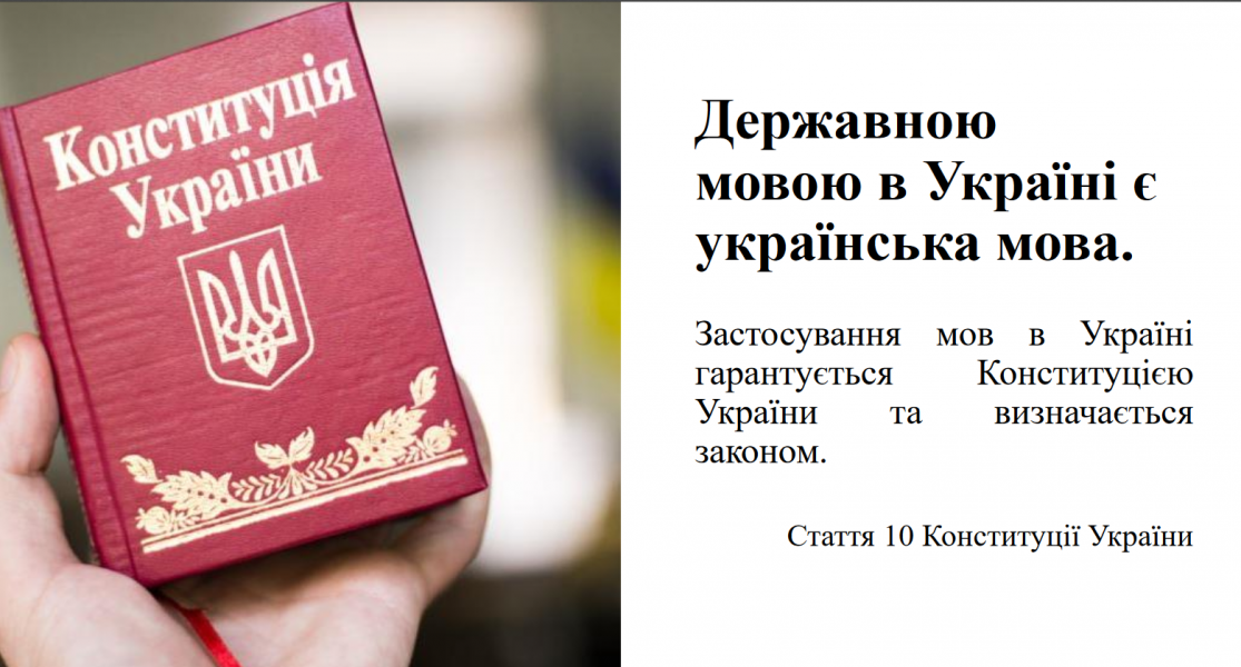 Відповідно до статті 10 Конституції України державною мовою в Україні є українська мова. Держава забезпечує всебічний розвиток і функціонування української мови в усіх сферах суспільного життя на всій території України. Застосування мов в Україні гарантується Конституцією України та визначається законом.