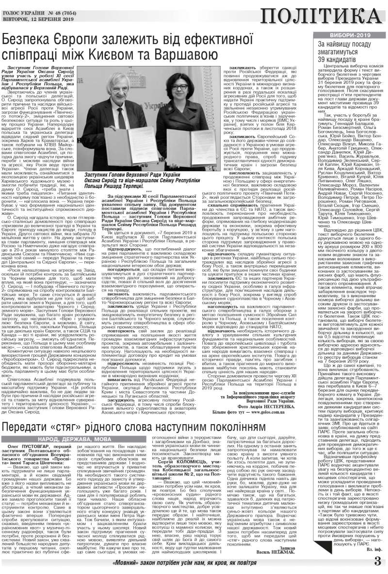 Повний випуск «Голосу України» від 12.03.2019 на сайті http://www.golos.com.ua