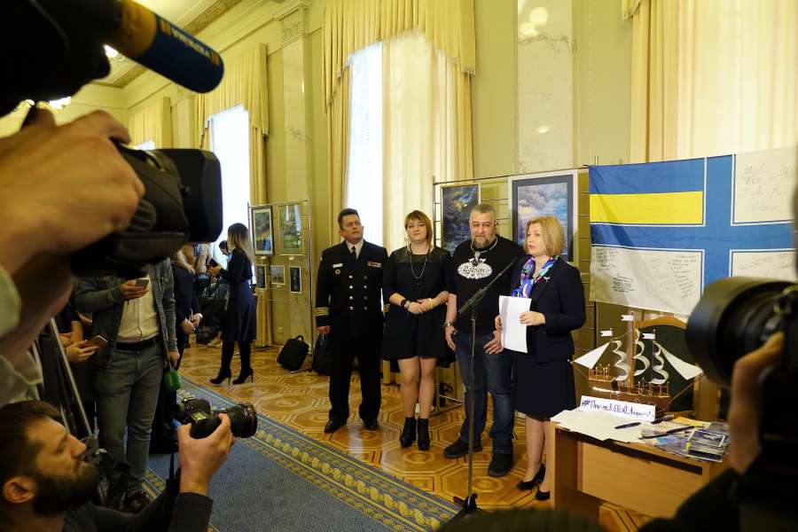 Відкрила експозицію Перший заступник Голови Верховної Ради України Ірина Геращенко, вона наголосила на тому, що захід проводиться задля привернення уваги суспільства до агресивних та протиправних дій з боку російської влади, а також з метою підтримати українських військовополонених моряків, які незаконно утримуються у московських слідчих ізоляторах.