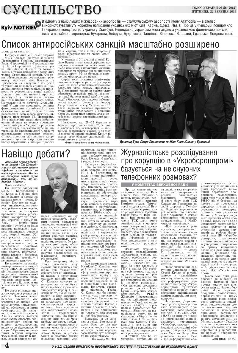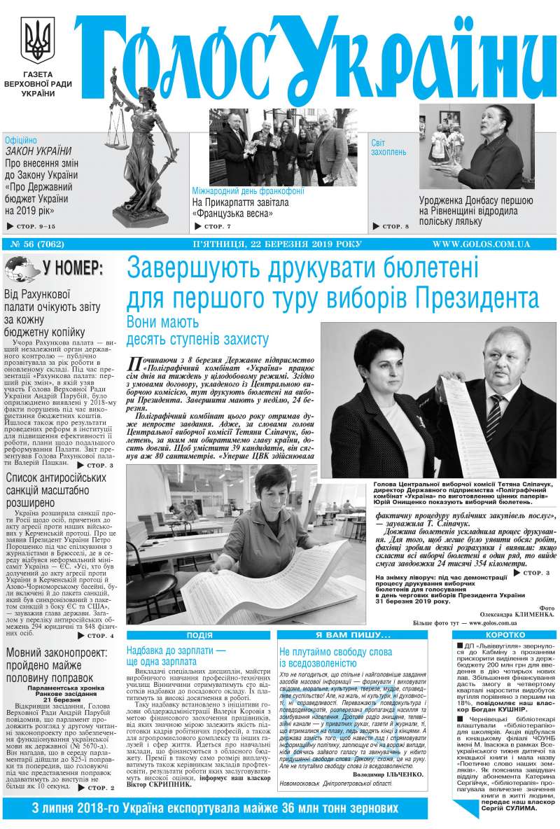 Повний випуск «Голосу України» від 22.03.2019 на сайті http://www.golos.com.ua