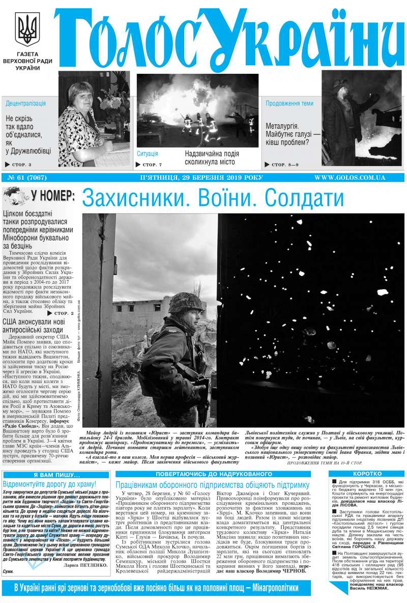 Повний випуск «Голосу України» від 29.03.2019 на сайті http://www.golos.com.ua