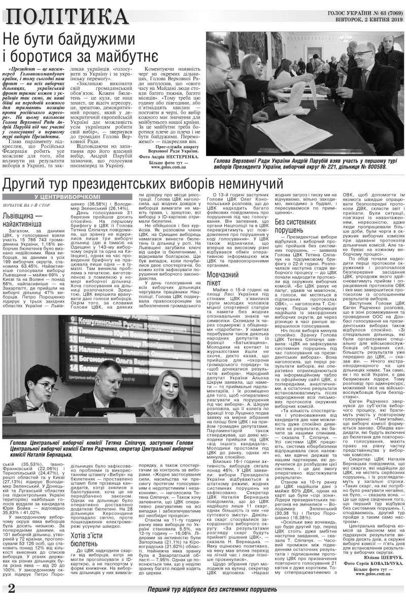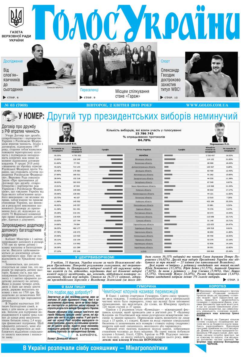 Повний випуск «Голосу України» від 02.04.2019 на сайті http://www.golos.com.ua