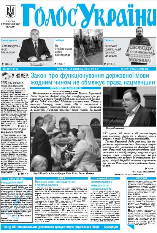 Повний випуск «Голосу України» від 10.04.2019 на сайті http://www.golos.com.ua