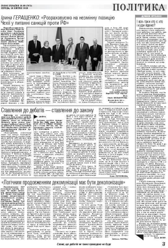 Ірина Геращенко: "Розраховуємо на незмінну позицію Чехії у питанні санкцій проти РФ"