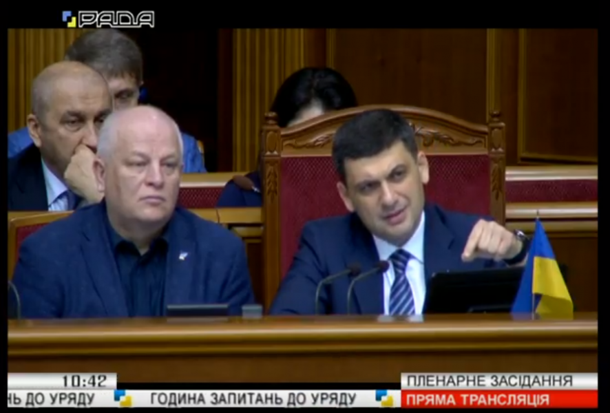 А.Парубій повідомив, що у сесійні залі присутні члени Кабінету Міністрів на чолі з Прем'єр-міністром Володимиром Гройсманом.