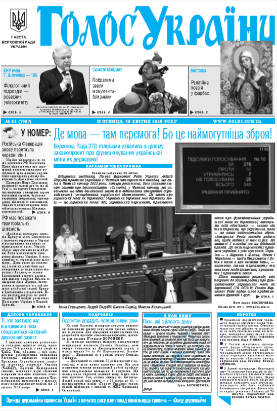 Повний випуск «Голосу України» від 26.04.2019 на сайті http://www.golos.com.ua