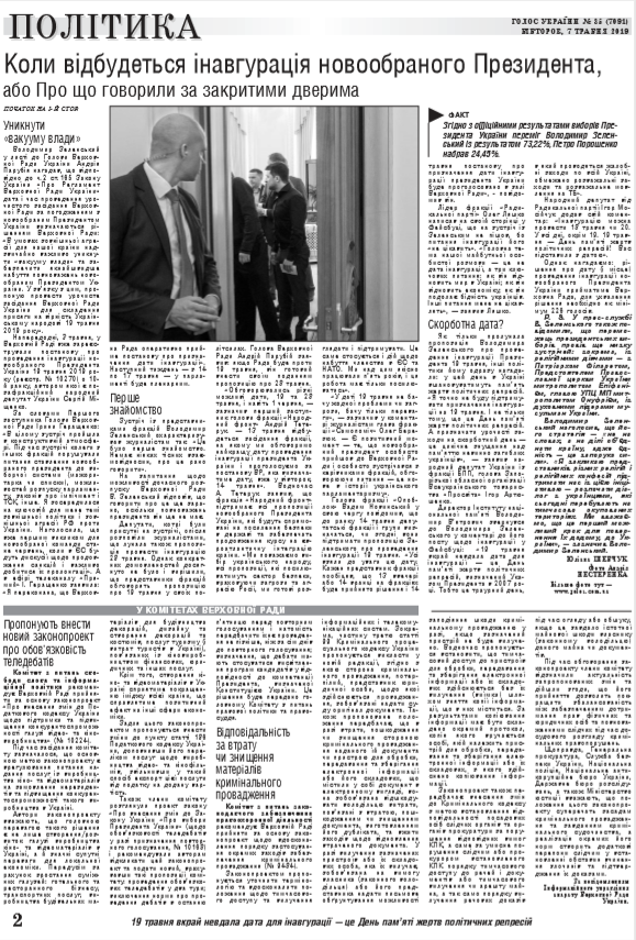 Повний випуск «Голосу України» від 07.05.2019 на сайті http://www.golos.com.ua