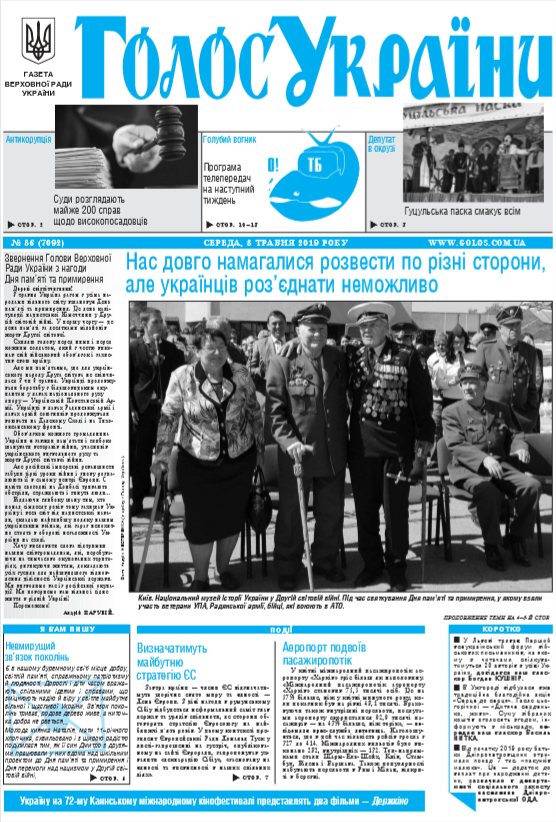 Повний випуск «Голосу України» від 08.05.2019 на сайті http://www.golos.com.ua