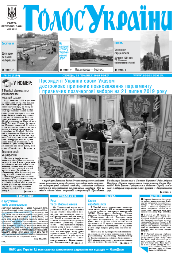 Повний випуск «Голосу України» від 22.05.2019 на сайті http://www.golos.com.ua
