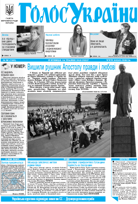 Повний випуск «Голосу України» від 24.05.2019 на сайті http://www.golos.com.ua