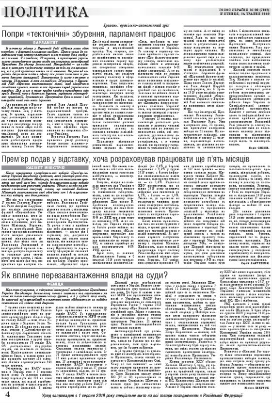 Після завершення президентських виборів Прем'єр-міністр України Володимир Гройсман, який уже три роки очолює нинішній Кабінет Міністрів, не втомлювався повторювати, що уряд ще п'ять місяців до парламентських виборів продовжуватиме розпочаті реформи. Однак з огляду на розвиток політичної ситуації, схоже, що нинішній Кабінет Міністрів виконуватиме свої обов'язки хоч і до парламентських виборів, але дострокових. (читайте у «Голосі України» на 4 стор. >>> article/317434)