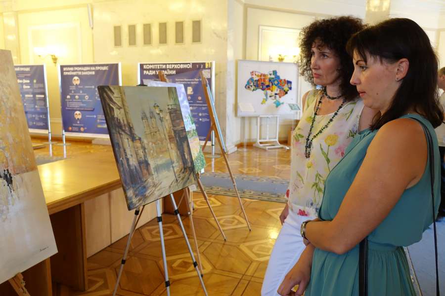 Серед них роботи художників: Юлії Степанюк «Брама», Ірини Леонової «Святогір'я», Нателли Крутій «Грузинські мотиви», Ірини Болгарової «Соняшники», Наталії Полінкевич «Поле», Катерини Івоніної «Венеція» та інші.