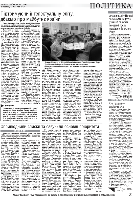 Їх отримали педагогічні працівники загальноосвітніх, професійно-технічних, дошкільних та позашкільних навчальних закладів. Відзнаки парламенту мають також найталановитіші молоді вчені в галузі фундаментальних і прикладних досліджень та науково-технічних розробок за 2018 рік. (читайте у «Голосі України» на 3 стор. >>> article/318069)