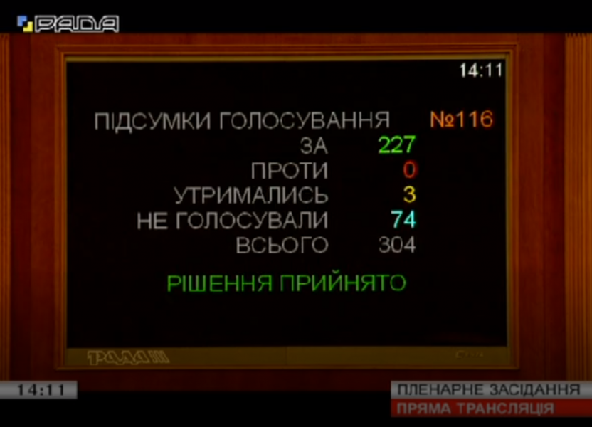 227 голосами "за" за результатами заслуховування народні депутати прийняли Постанову №10397.