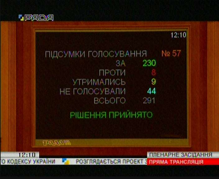 Верховна Рада України 230 голосами прийняла Виборчий кодекс в цілому.