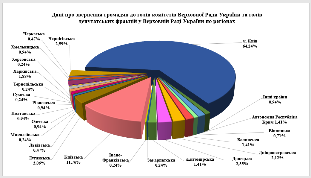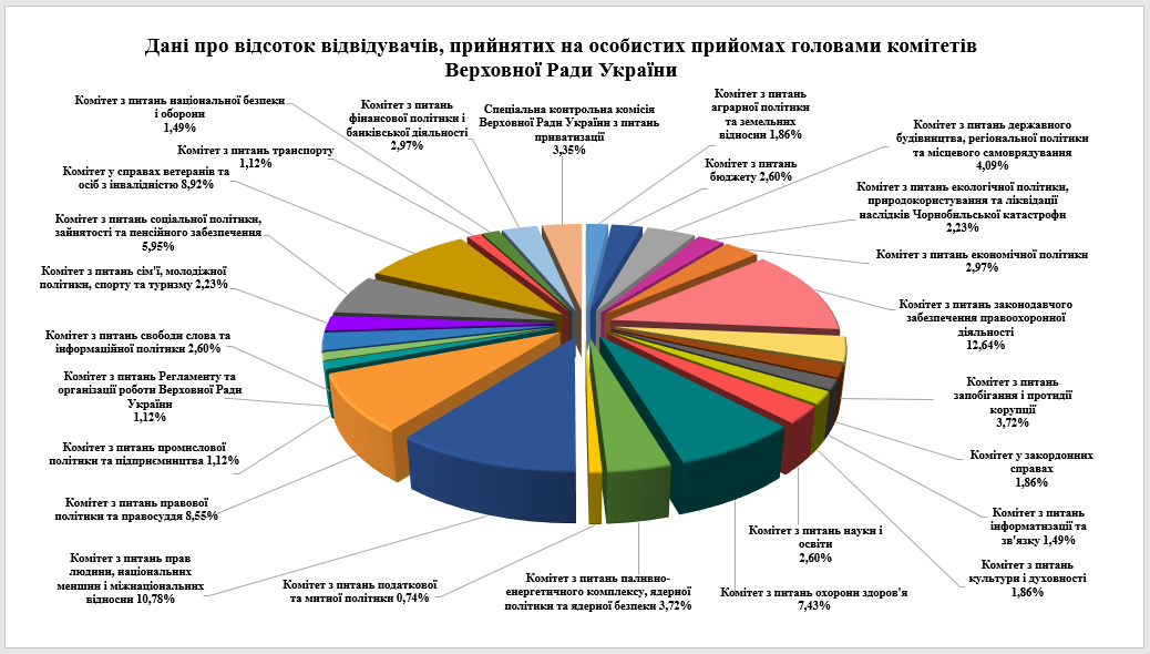 Решта десять прийомів громадян було проведено членами комітетів Верховної Ради, депутатських фракцій, які прийняли 104 відвідувачі.