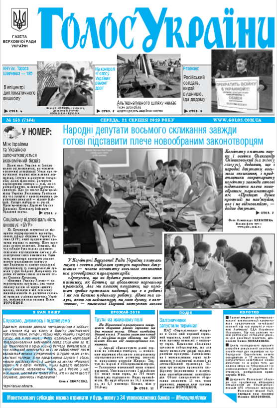 Повний випуск «Голосу України» від 21.08.2019 на сайті http://www.golos.com.ua