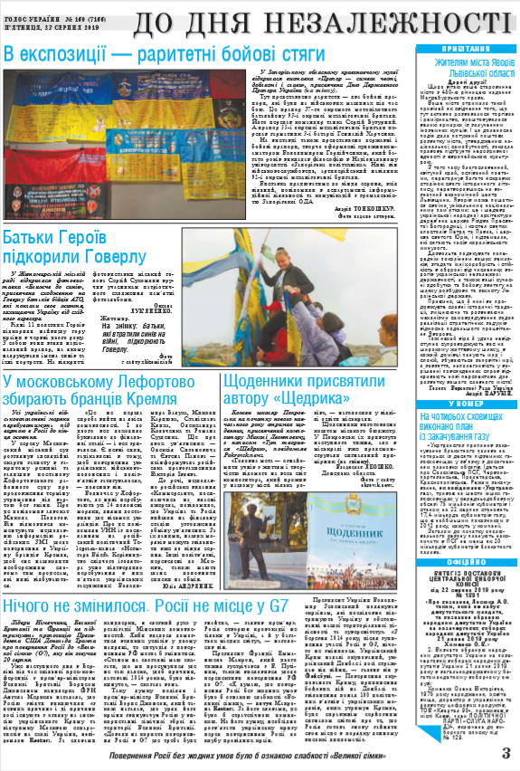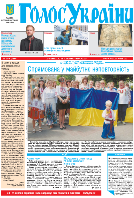 Повний випуск «Голосу України» від 23.08.2019 на сайті http://www.golos.com.ua