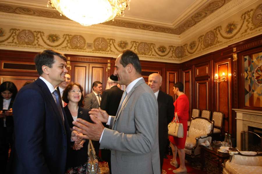 У четвер, 29 серпня, Голова Підготовчої депутатської групи Верховної Ради України Дмитро Разумков зустрівся з керівниками іноземних делегацій, запрошених на Урочисте засідання Верховної Ради України з нагоди складення присяги новообраними народними депутатами України.