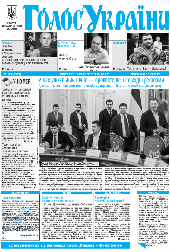 Повний випуск «Голосу України» від 03.09.2019 на сайті http://www.golos.com.ua