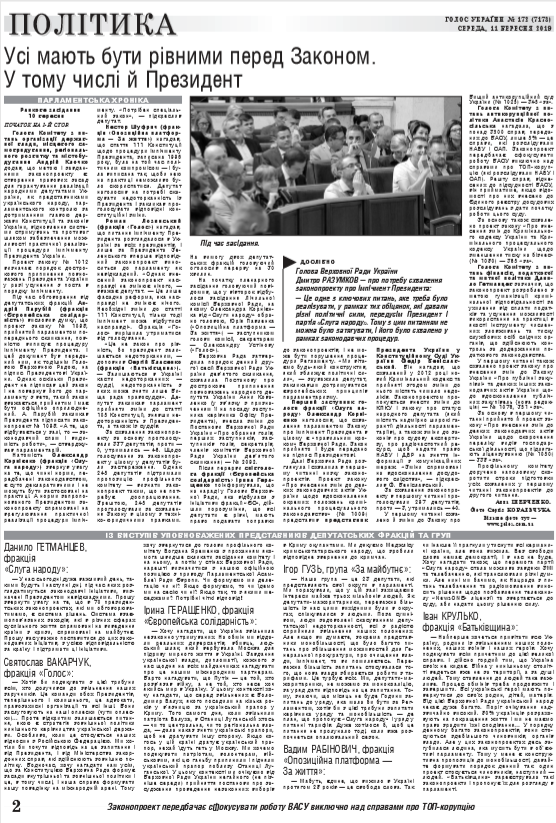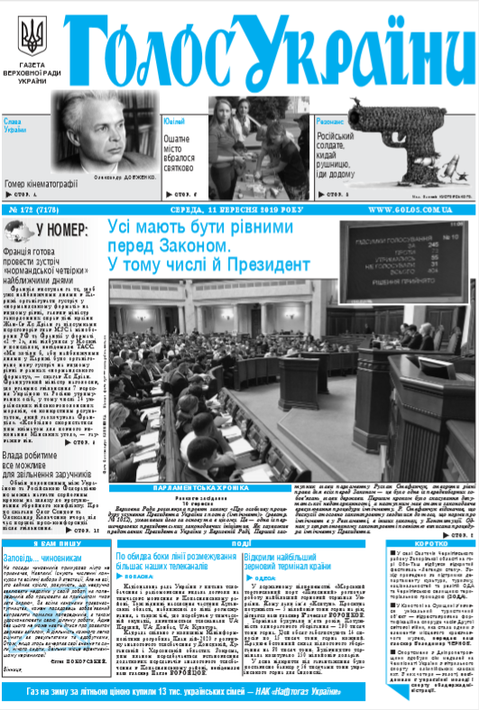 Повний випуск «Голосу України» від 11.09.2019 на сайті http://www.golos.com.ua