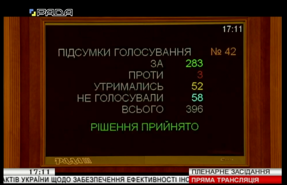 Верховна Рада 313 голосами ухвалила в цілому з техніко-юридичним правками Закон «Про внесення зміни до Закону України "Про приватизацію державного і комунального майна".