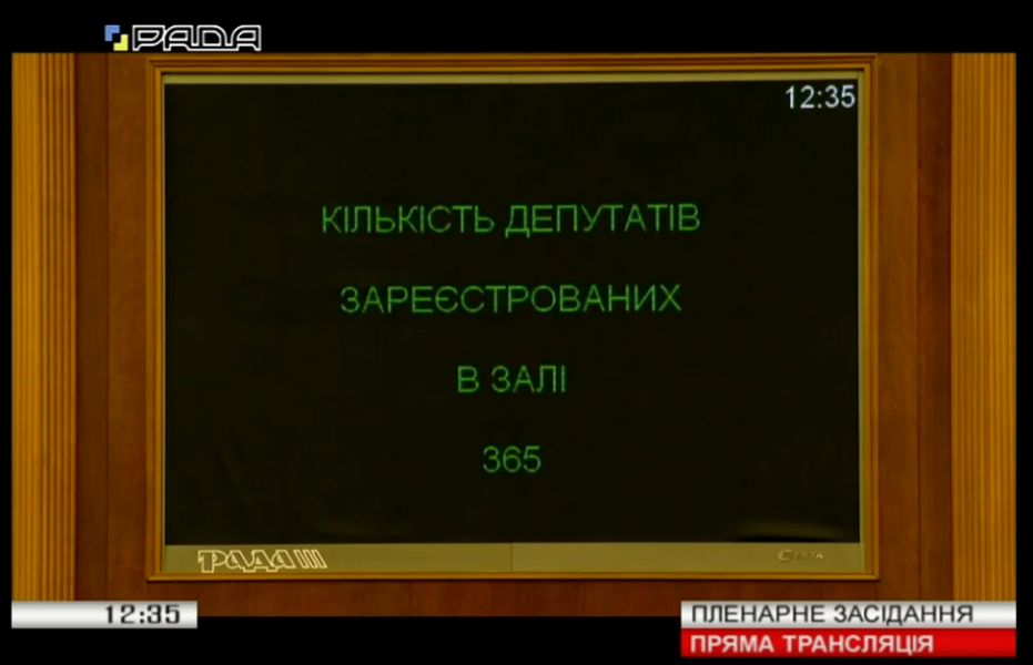 Для участі у ранковому засіданні Верховної Ради зареєструвались 365 народних депутатів.