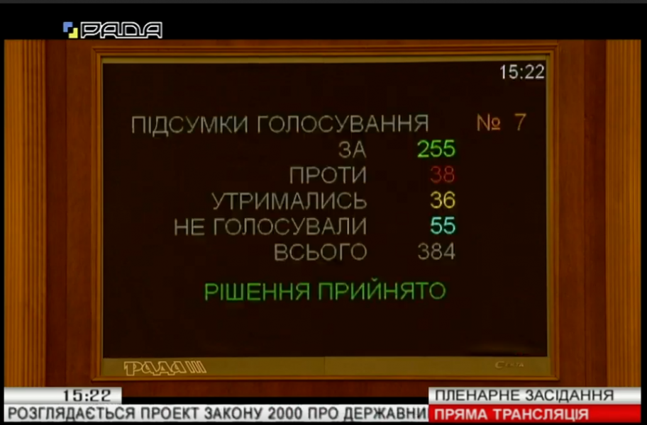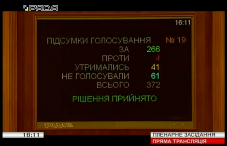 Проект Постанови було прийнято 256 голосами за основу та 255 голосами - в цілому.