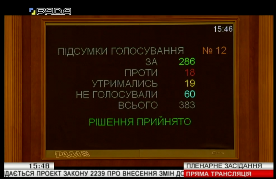 Законопроект 286 голосами було прийнято за основу в редакції авторів з техніко-юридичними правками.