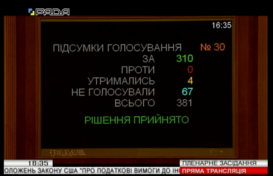 310 голосами законопроект було прийнято в цілому.