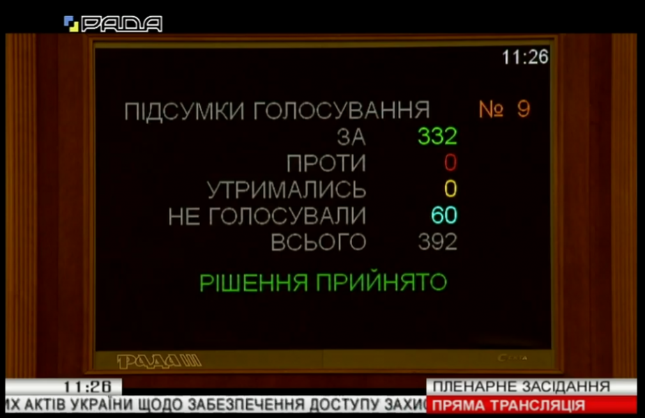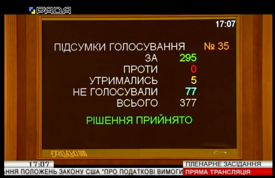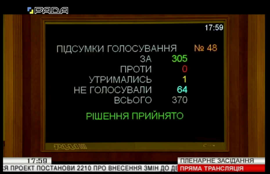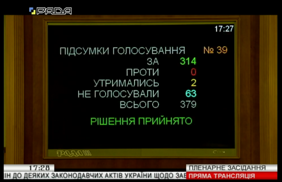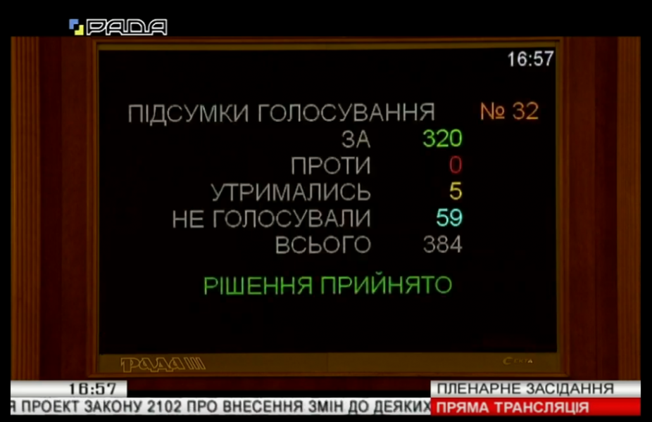За пропозицією профільного комітету законопроект прийнято за основу 323 голосами «за» та 332 голосами «за» в цілому з врахуванням техніко-юридичних правок.