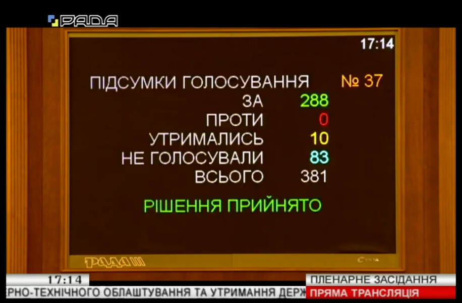 Постанову прийнято 287 голосами.