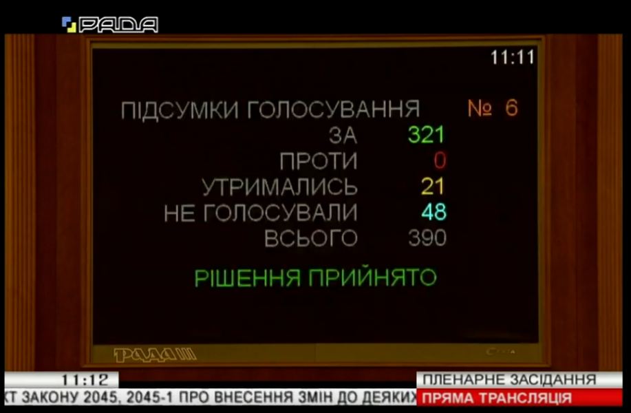 321 голосом "за" народні депутати підтримали рішення профільного комітету.