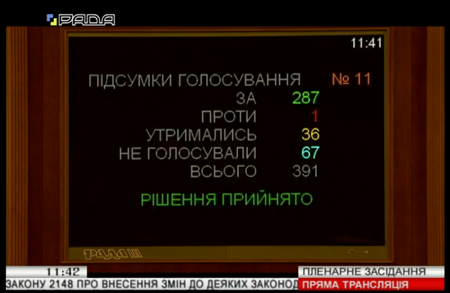287 голосами «за» законопроект прийнято за основу.