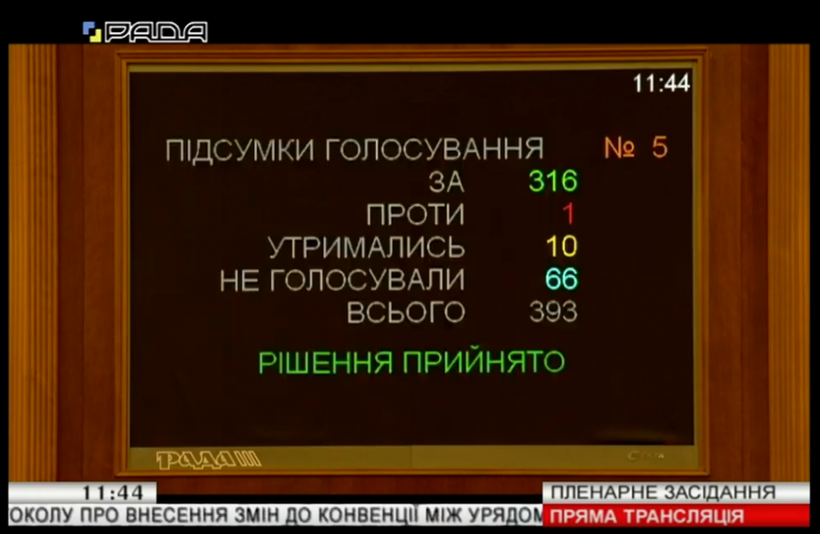 За результатами голосування законопроект прийнято в цілому 301 голосом «за».