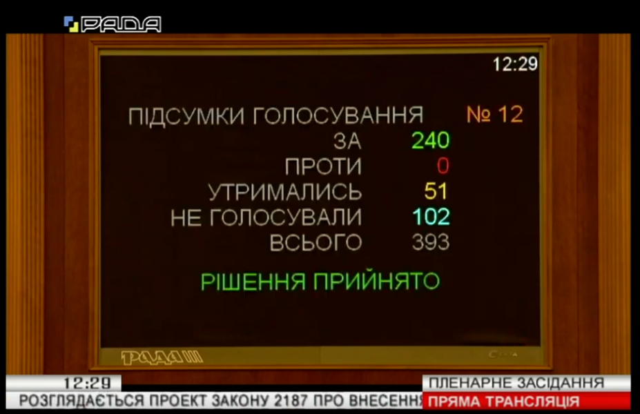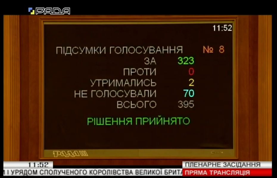 Верховна Рада 323 голосами прийняла законопроект за основу та в цілому.