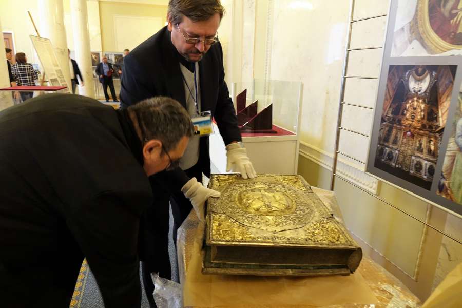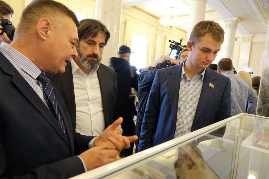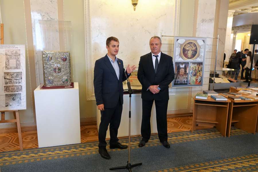 В кулуарах ІІ поверху булинку Верховної Ради України народі депутати України, працівники Апарату Верховної Ради України, представники засобів масової інформації та гості парламенту мали можливість побачити два унікальних експонати Заповідника кінця ХVІІ – початку ХVІІІ ст., до яких належить напрестольне Євангеліє, що було надруковано у Києво-Печерській Лаврі у 1707 р. в часи гетьманства Івана Мазепи.