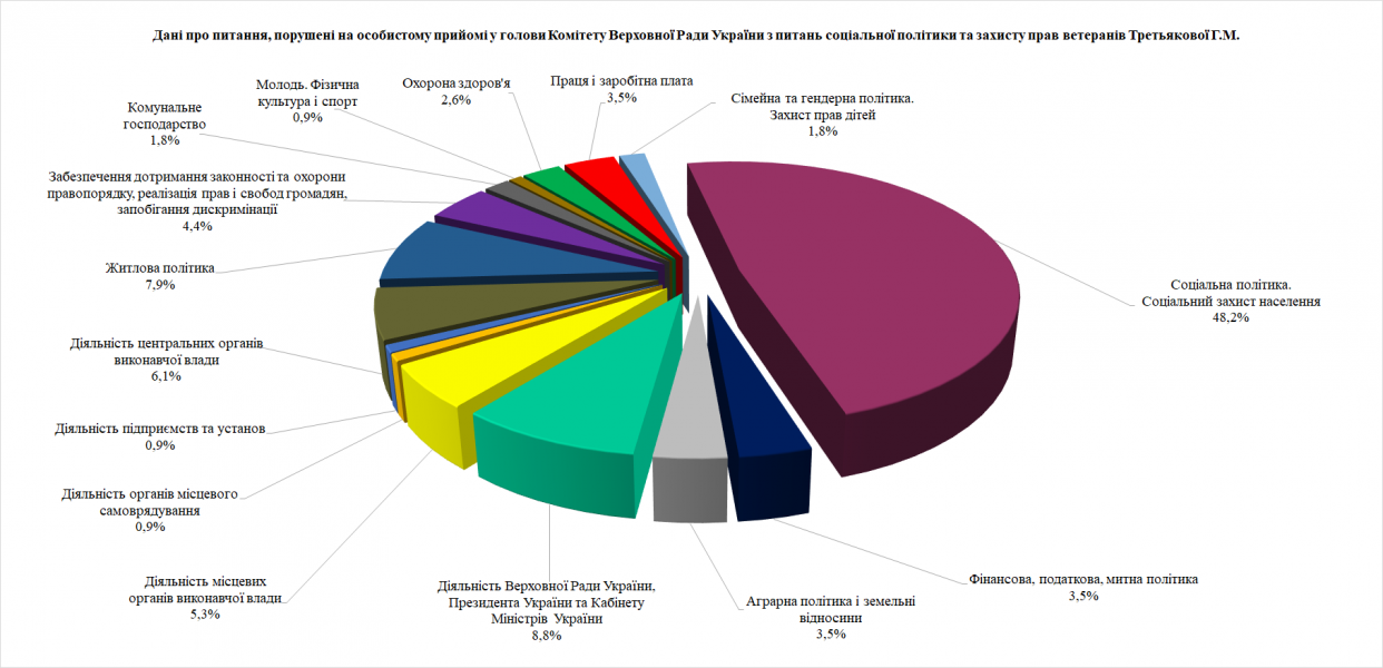 Під час особистого прийому відвідувачі порушили 114 питань, найактуальнішими з яких були питання: соціальної політики та соціального захисту населення; діяльності Верховної Ради, Президента України та Кабінету Міністрів України.