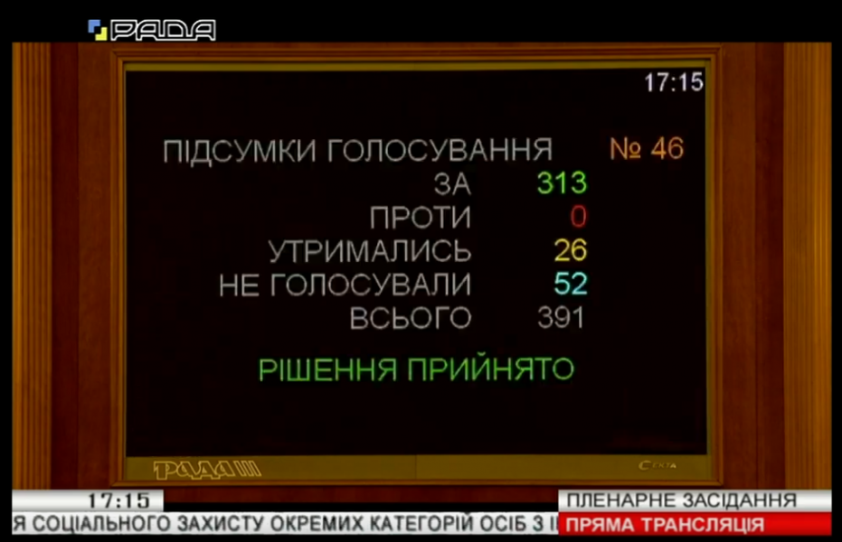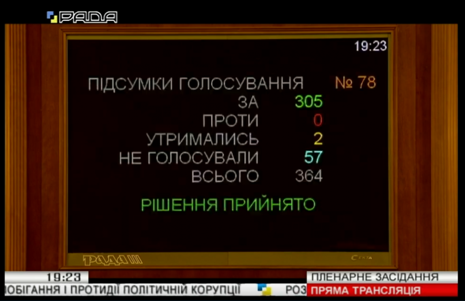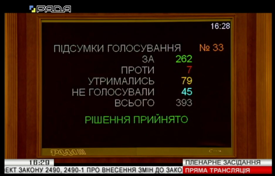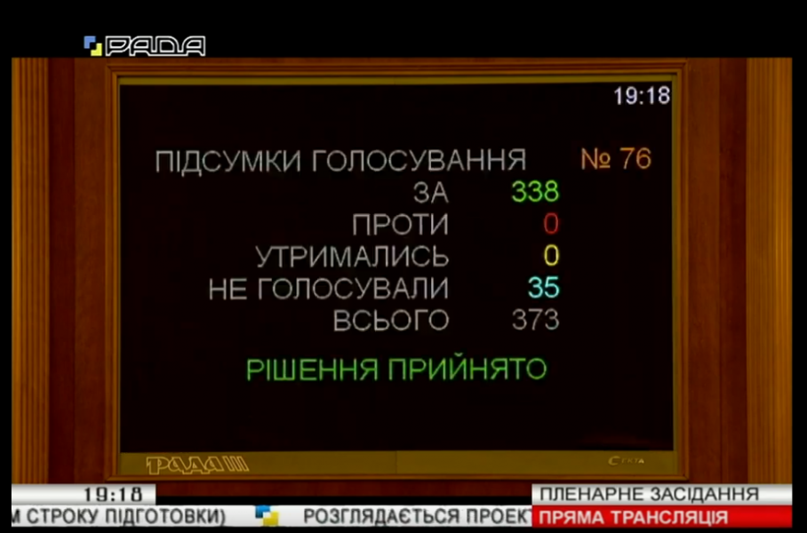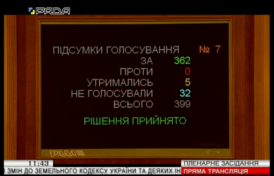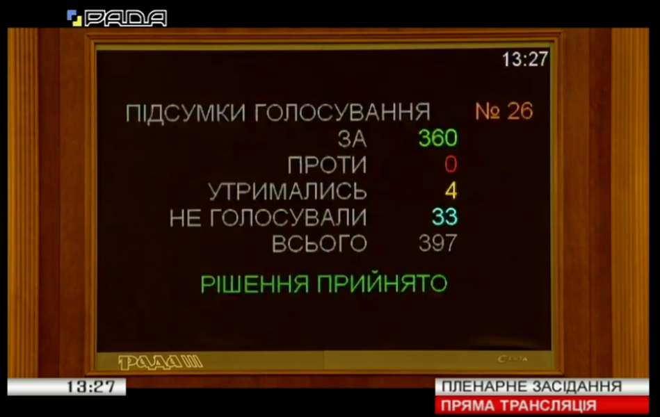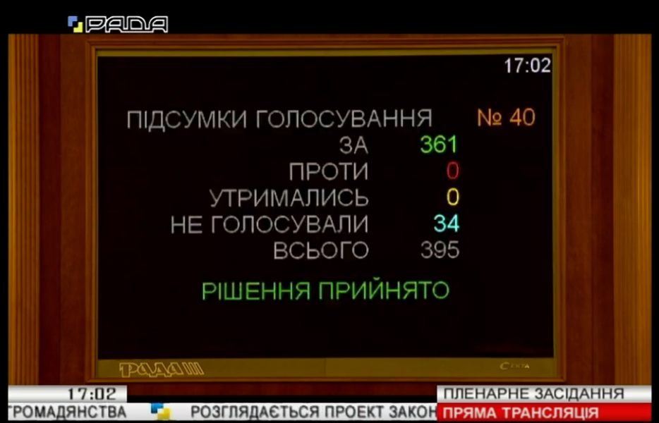 За результатами голосування законопроект прийнято в цілому 362 голосами «за».