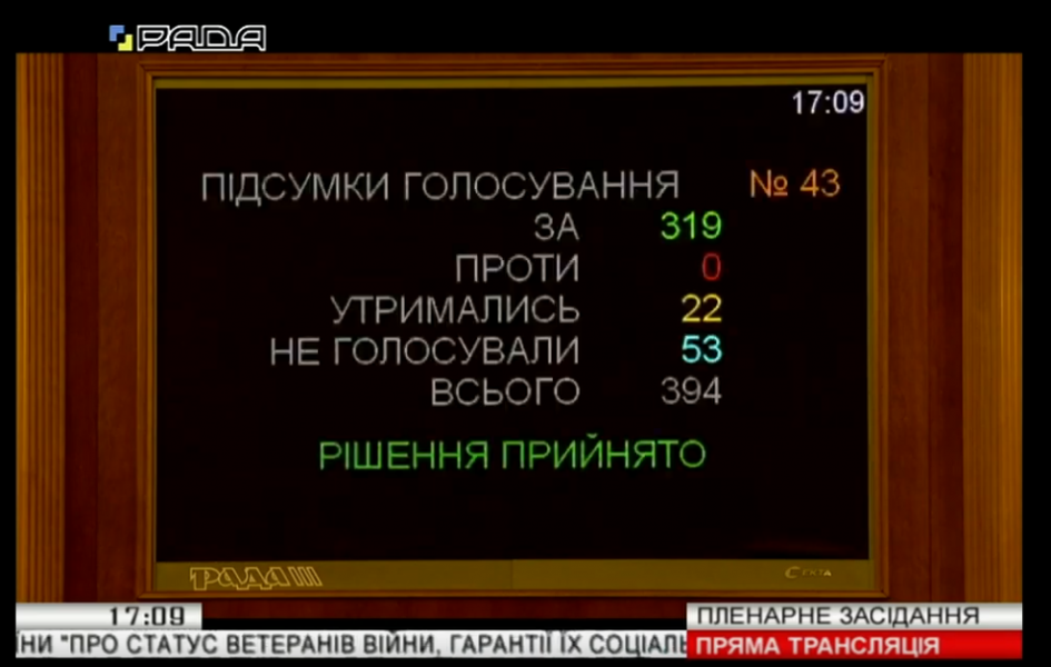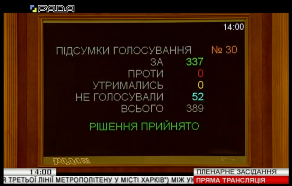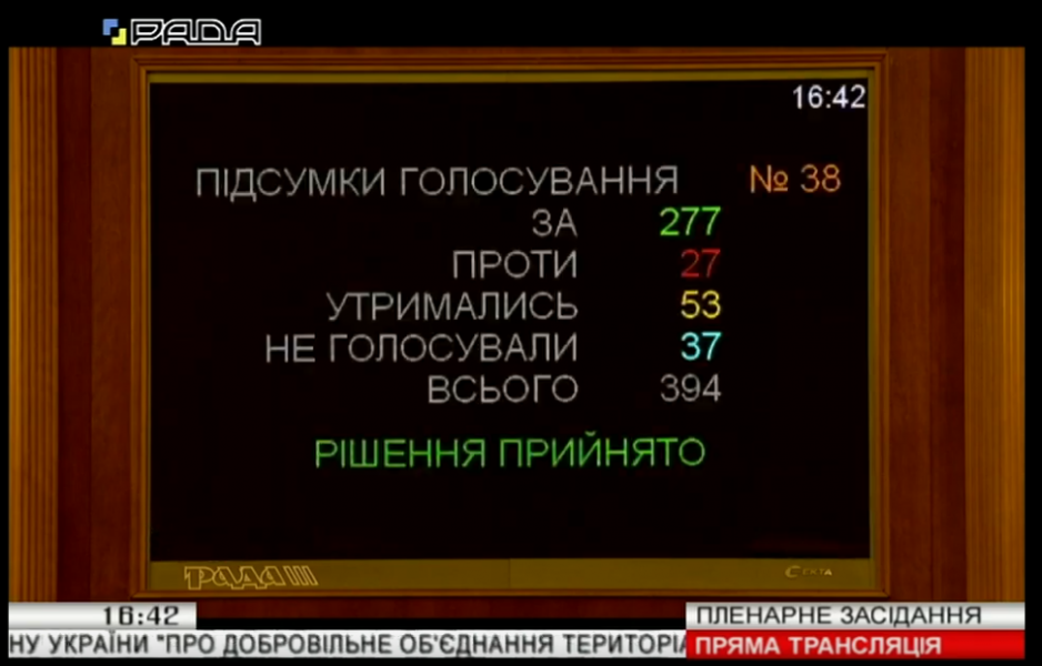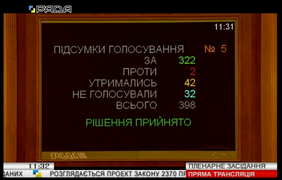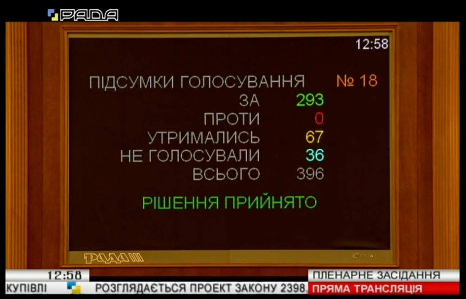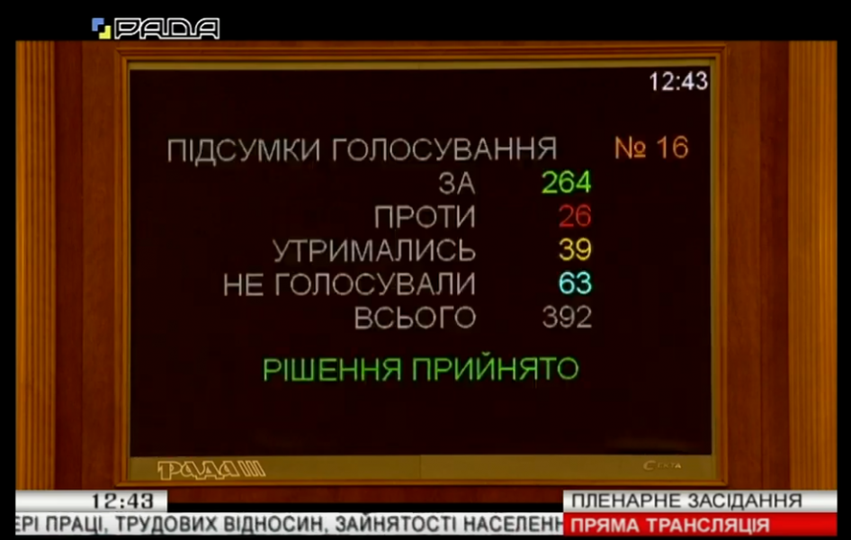 За результатами голосування законопроект прийнято в цілому 362 голосами «за».