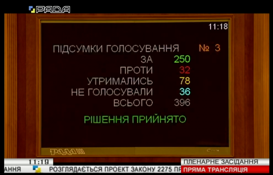 Народні депутати 319 голосами підтримали рішення Комітету.