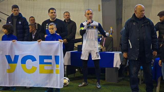Товариський матч, першим ударом по м’ячі, розпочали легенди українського футболу Олександр Заваров, Володимир Мунтян та Андрій Біба.