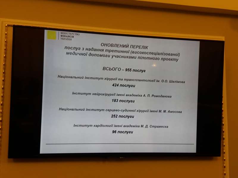 Представники Міністерства фінансів зазначили, що для вказаного переходу необхідні такі дані: сформований довідник послуг, які не надаються, або надаються в обмеженій кількості в інших закладах охорони здоров’я; прорахувати реальну собівартість такої послуги, яка включає всі лікарські засоби і медичні вироби, які використовуються при проведенні того чи іншого хірургічного втручання. За цим переліком послуг і тарифами держава компенсуватиме витрати на лікування громадян. Тобто, буде запроваджений механізм: кошти йдуть за пацієнтом.